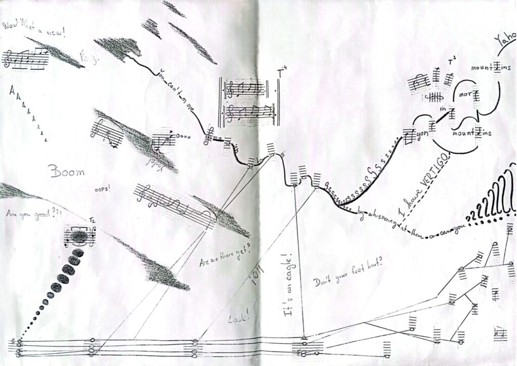 Mountains are Calling is a graphic score was created for a residency project at the 2023 Jazz Goes to the Town festival.